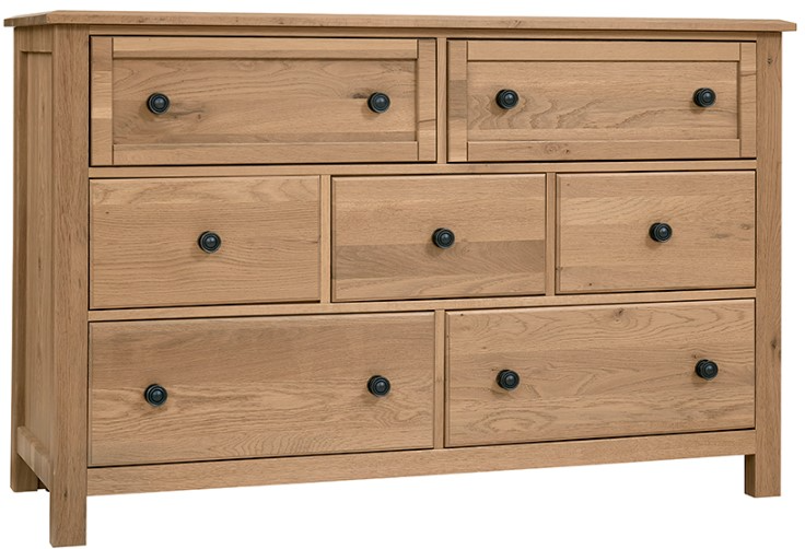 This dresser shown in clear oak finish has seven drawers and is made from solid American white oak. Its design elements create a look that fits farmhouse; loft; cottage; and coastal spaces.Read More