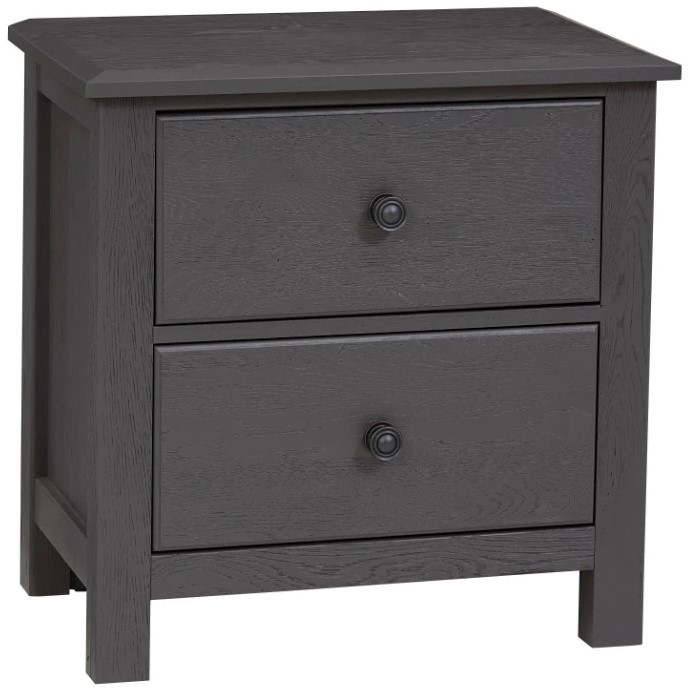 This nightstand has two drawers shown in a graphite finish offers casual style to any bedroom in your home. Made from solid American white oak. Make a bold statement to your bedroom.Read More