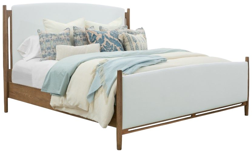Make a statement with the Verona king upholstered bed, designed for those seeking true transitional elegance. Perfectly blending minimalistic simplicity with transitional sophistication, this platform bed showcases soft curved details in a delectable medium brown oak finish, with the headboard and footboard upholstered in a cream-colored woven performance fabric.Read More