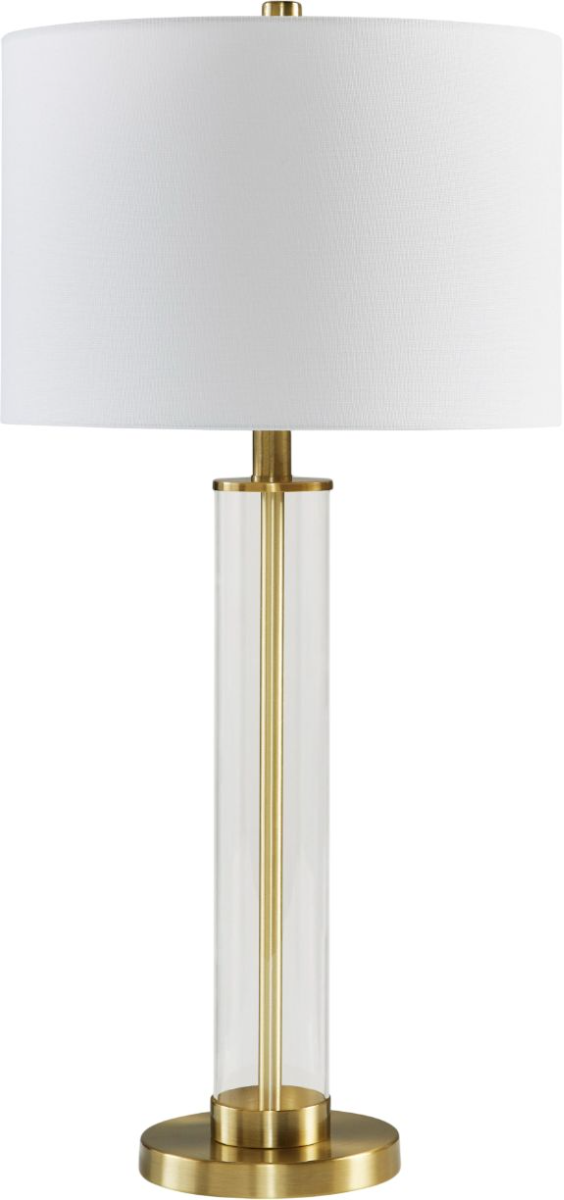 The body of this elegant table lamp has a contemporary flair, with a transparent glass cylinder that reveals a brass-tone rod inside. It's a minimal design made for maximal illumination.Read More