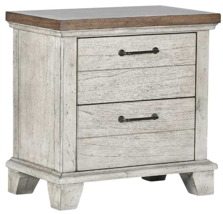 A rustic, farmhouse-inspired bedroom, Bear Creek features a white-smoke finish that contrasts beautifully with honey-smoke stained tops and cap rails. Offers a variety of storage items with ultra-deep drawers supported by side drawer glides for easy operation.Read More