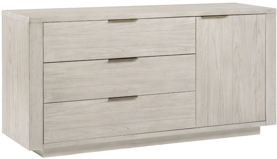 The Garland server marries a modern silhouette with a relaxed, lightly distressed greige finish in a dining side piece with the perfect casually elegant style of today’s dining rooms. A modern plinth base and tastefully appointed satin brass hardware creates extremely clean lines that displays the natural beauty of the wood expertly.Read More