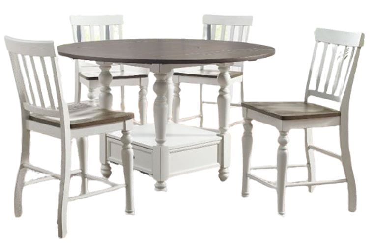 Gather ’round the Counter Height Dropleaf Table from the Joanna Collection. This 59 inch round table is packed with features the entire family will love starting with a double-drop leaf top that expands seat up to eight. At the heart of the table-top is a lazy Susan that makes serving dinner much easier.Read More