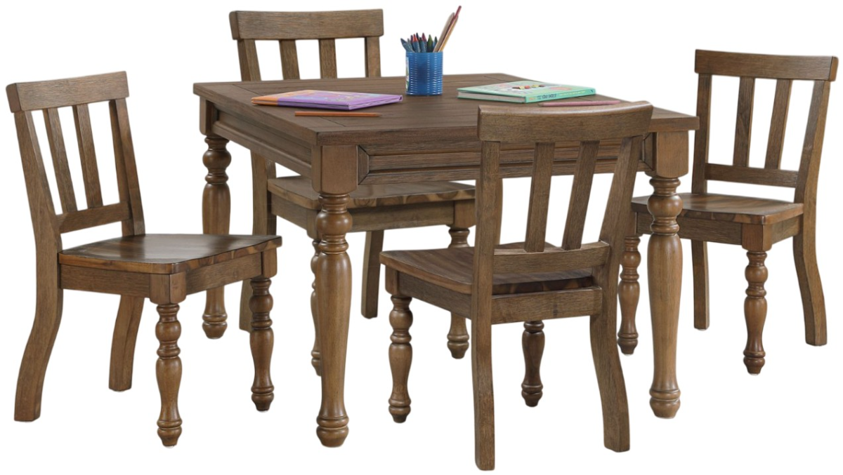 The Joanna 5-Piece kids dining set combines rustic charm with lasting durability. Made from kiln-dried hardwoods and finished in ivory and mocha, it features sturdy legs, comfortable scooped chairs, and a child-friendly size—perfect for meals, crafts, and playtime.Read More