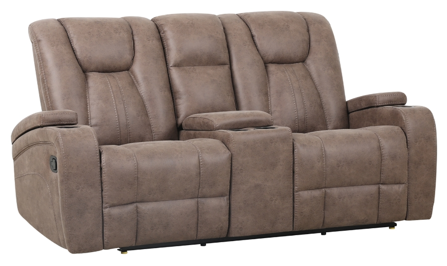 Upgrade your living room command center with the Marlow manual console loveseat. Designed for shared comfort, dual manual recliners let you kick back with ease, while plush cushioning and detailed baseball stitching deliver standout style.Read More