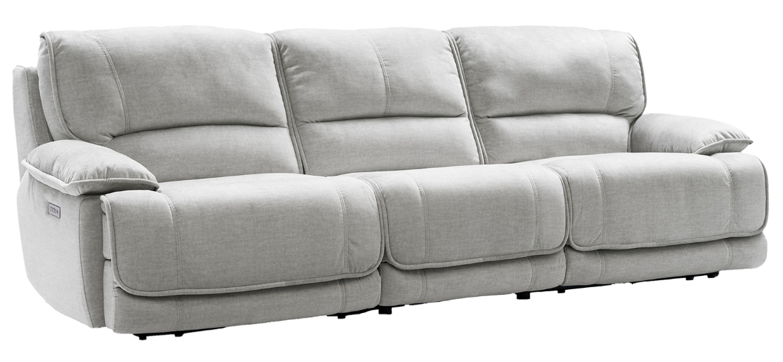 Relax in premium comfort with the Olsen 3-piece dual-power zero-gravity wallhugger sofa, designed in a clean, transitional style that complements both modern and classic interiors. Upholstered in plush, low-pile 100% polyester fabric with refined vinyl welt accents, it offers lasting durability and softness.Read More