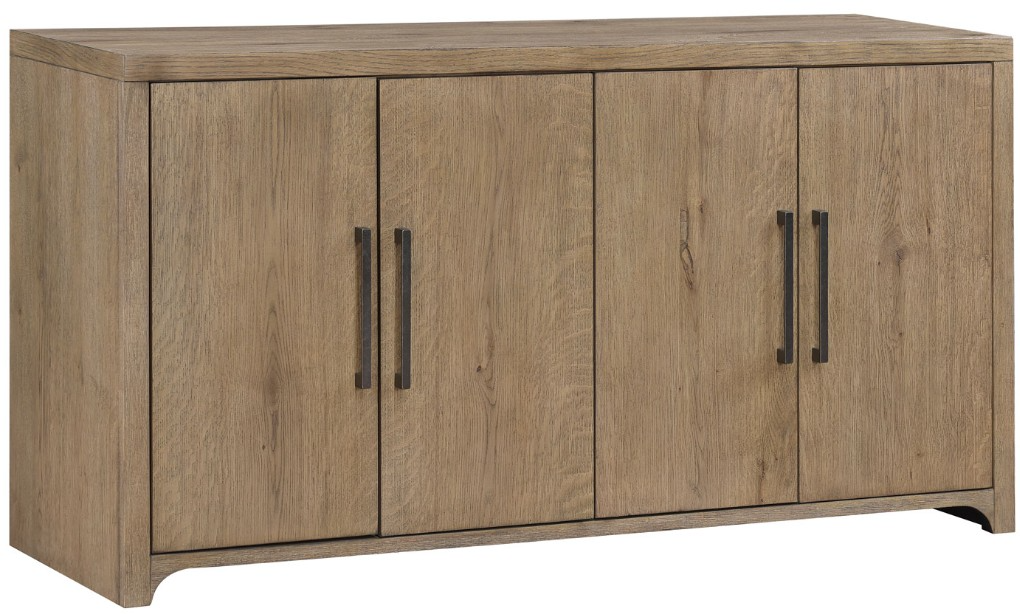 Casual rustic modern styling, the double doored 60″ Server offers bountiful storage in a horizontal packate