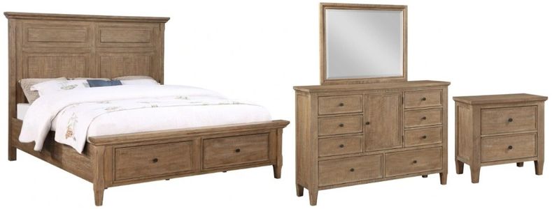 Experience the tranquility of a rustic retreat with the Riverdale king storage bedroom set. Rustic, yet refined, this group is expertly crafted from pine veneers and solids with a driftwood finish, that exudes a relaxed and comfortable vibe. The king storage bed combines with the other pieces to provide ample space.Read More