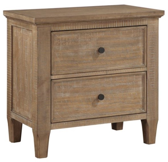 Introduce rustic sophistication to your bedroom with the Riverdale 2-Drawer Nightstand. Expertly crafted from pine and other woods, this piece exudes warmth and comfort. The distressing adds character and an heirloom touch, while the metal side drawer glides provide ample storage space for all your essentials.Read More