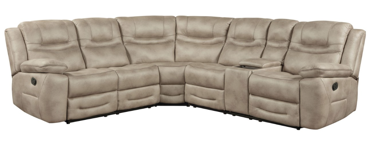 The Shelton 3-Piece Manual Reclining Sectional combines comfort and practicality in a soft camel polyester finish. Two outer seats recline to 135 degrees with minimal wall clearance, while the lift-top console offers wireless charging, hidden storage, and pop-out cupholders. Stylish stitching and plush padding complete this inviting, functional design.Read More